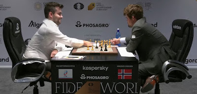 Se jugaba la partida número once del Campeonato Mundial de Ajedrez, en la que Ian Nepomniachtchi (Nepo) conduciría las piezas blancas y Magnus Carlsen las negras. El ruso estaba obligado a ganar (incomprensiblemente no luchó por la victoria en el juego anterior), pues a falta de cuatro partidas para el final del match iba tres puntos por debajo del noruego.